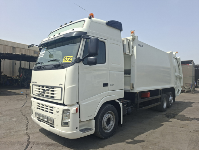 VOLVO GARABGE COMPACTOR [ZOELLER] [LIFTING SYSTEM SUITABLE FOR PLASTIC BIN, 1.1 CBM, 2.5 CBM & 6CBM] TYPE – FH 13 440 NUMBER – 572 MODEL YEAR – 2007 I SHIFT GEAR BOX, 6X2, AIR SYSTEM